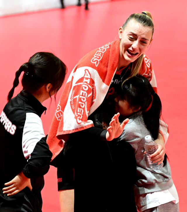 흥국생명과 마지막 맞대결에서 마침내 웃은 페퍼저축은행은 너무 행복했다. 특히 테일러는 눈물을 펑펑 흘리며 감정에 복받친 모습이었다. 행복한 눈물을 흘리며 기뻐하는 테일러를 본 동료들은 그녀를 따뜻하게 안아주며 승리의 기쁨을 함께 나눴다.