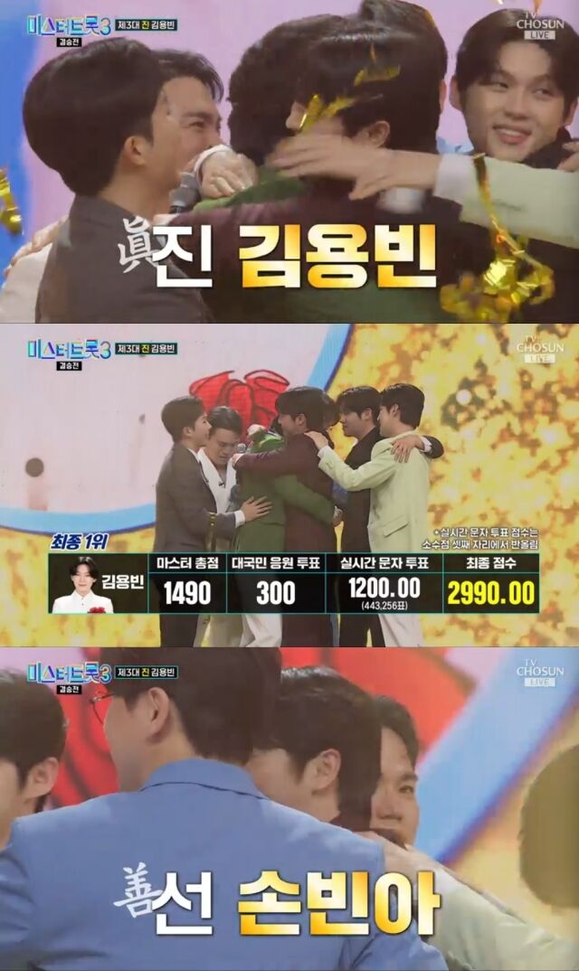 이날 실시간 총 최종 문자투표 수 206만 1890표 가운데 유효표로 인정된 것은 164만1378표였다. 3대 眞을 차지한 영광의 주인공은 김용빈이었다. 김용빈은 44만 3256표, 득표율 27.01%를 기록하며 총점 2990점으로 眞이 됐다.