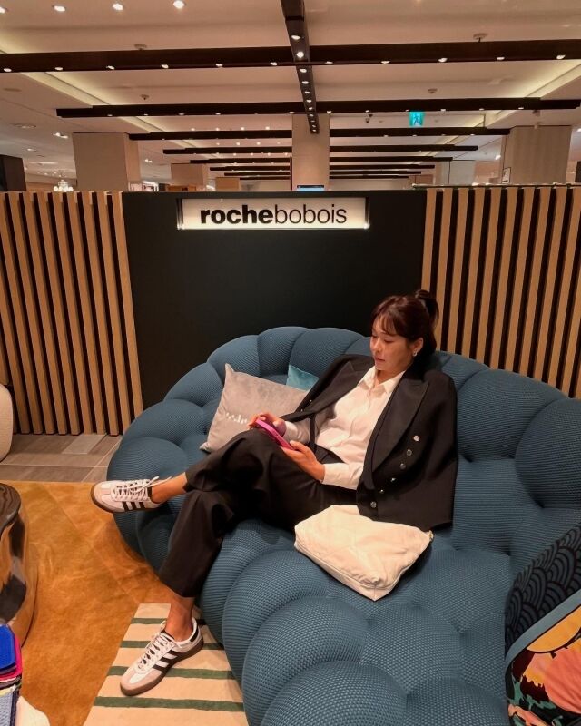 공개된 사진에는 외출에 나선 현영의 모습이 담겼다. 현영은 흰 블라우스, 검은색 슬랙스를 착용한 채 검은색 재킷을 어깨에 걸치고 있다. 여기에 흰색 운동화를 매치해 '힙'한 감성을 살렸다. 소파에 앉아 있는 현영에게서 여유로움이 물씬 느껴진다.