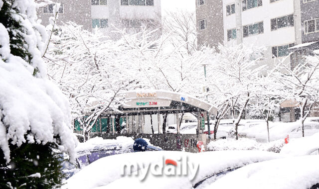 [마이데일리 = 곽경훈 기자] 대설특보가 내려진 18일 오전 경기도의 한 아파트 주자창에는 새벽부터 내린 눈이 소복히 쌓여 있다.