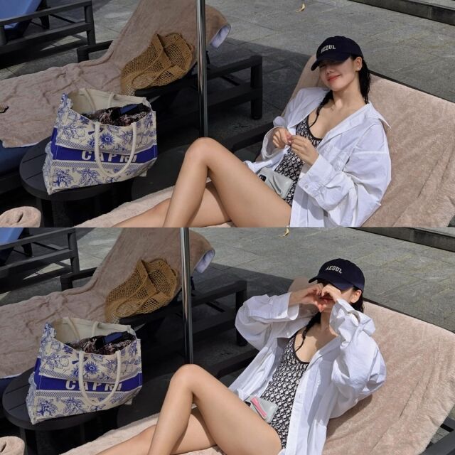 그는 블랙 앤 화이트 패턴의 비키니에 화이트 셔츠를 걸쳐 트렌디한 리조트 룩을 연출했다. 또한, 볼캡과 빅백을 매치해 꾸안꾸(꾸민 듯 안 꾸민 듯) 스타일을 완성했다. 카메라를 들고 인증샷을 남기거나 선베드에서 편안하게 쉬고 있는 모습에서는 김남주의 특유의 사랑스러움이 돋보였다.