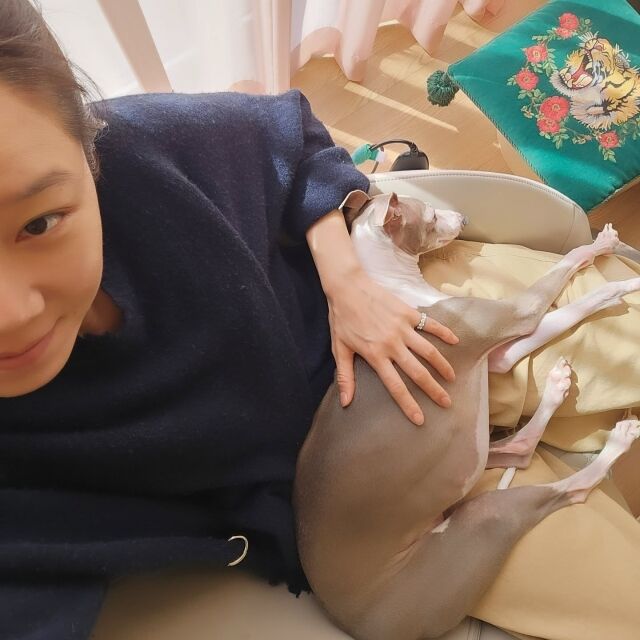 공개된 사진에는 반려견 요지와 함께 휴식을 취하고 있는 공효진의 모습이 담겼다. 공효진은 두터운 남색 니트에 베이지색 면바지 등 편안한 차림이다. 그런 공효진의 무릎 위는 7kg을 자랑하는 이탈리안 그레이하운드 요지가 차지하고 있다. 따뜻한 햇살을 맞으며 묵직하고 따끈한 반려견을 무릎 위에 얹는 공효진의 일상이 부러움을 자아낸다.