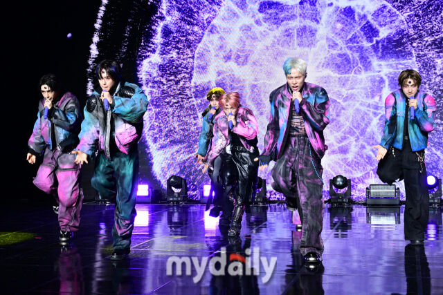 [마이데일리 = 곽경훈 기자] 24일 오후 서울 선릉로 일지아트홀에서 진행된 그룹 뉴비트 정규 1집 ‘RAW AND RAD’ 쇼케이스에서 멤버들이 타이틀곡을 선보이고 있다.