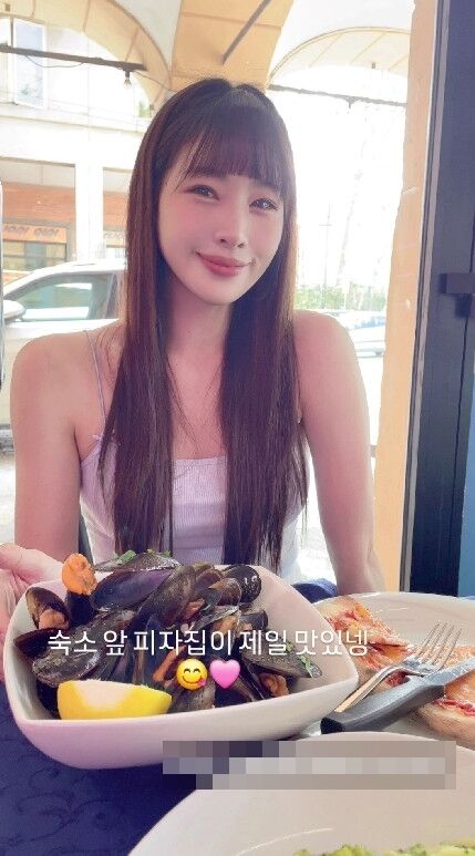 신수지는 24일 자신의 계정에 "숙소 앞 피자집이 제일 맛있네"라는 글과 함께 한 장의 사진을 게재했다.