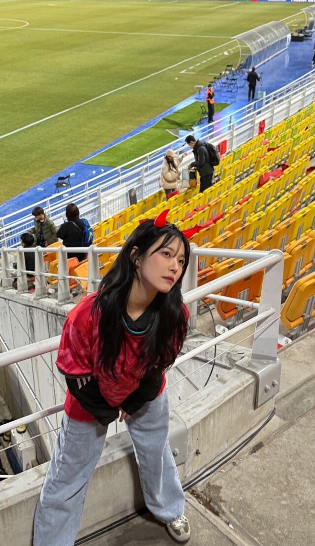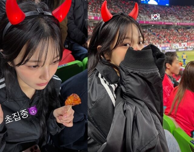 [마이데일리 = 김하영 기자] 그룹 프로미스나인 멤버 백지헌이 축구 국가대표 경기를 직접 관람하며 응원을 펼쳤다.