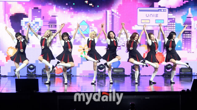 [마이데일리 = 김도형 기자] 15일 서울 광장동 예스24 라이브홀에서 그룹 유니스(UNIS)의 두 번째 미니앨범 'SWICY(스위시)' 발매 미디어 쇼케이스가 열렸다.