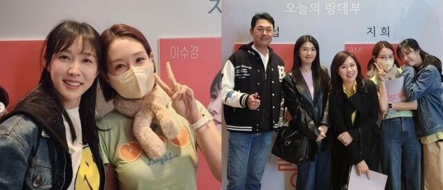 공개된 사진 속 오정연은 연극 '랑데부' 관람을 마치고 주연을 맡은 이수경과 함께 다정한 포즈를 취하고 있다. 또 다른 사진엔 아나운서 선배인 김성경과 김경란의 모습이 보인다. 남자 주연인 박성웅과 함께 여자들 넷이 활짝 웃으며 사진을 찍었다.