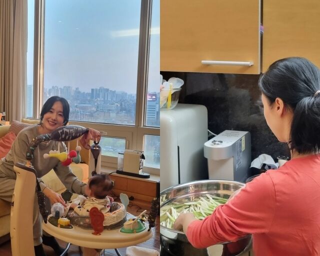 공개된 사진에는 장기투숙 중인 여의도 한 호텔 객실에서의 이정현이 담겼다. 창 밖으로 우뚝 솟은 고층건물과 다소 흐린 하늘 등 서울의 풍경을 감상할 수 있다. 이정현은 편안한 회색 트레이닝복 차림으로 노란 소파에 걸터앉고 있다. 장난감으로 둘러싸인 둘째를 돌보고 있는 이정현에게서 여유로움과 따스함이 느껴진다.