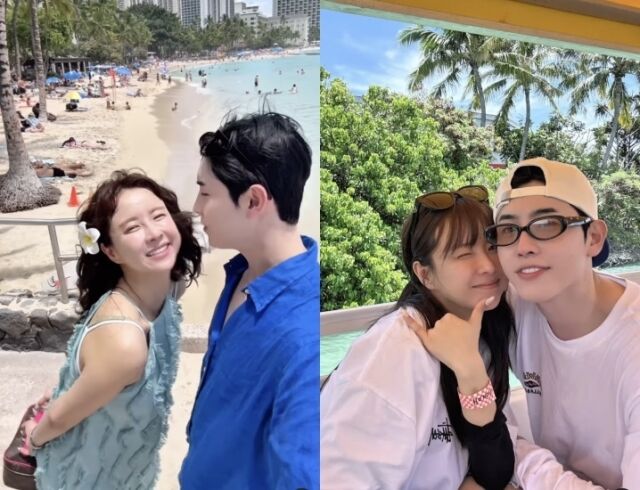 두 사람은 푸른 바다가 펼쳐진 하와이 해변에서 환한 미소를 지으며 인증샷을 남기는가 하면, 커플룩을 맞춰 입고 입맞춤을 나누는 장면도 공유해 시선을 모았다. 마치 잡지 화보를 연상케 하는 분위기 속에서, 두 사람의 달콤한 허니문 일상이 그대로 전해진다.