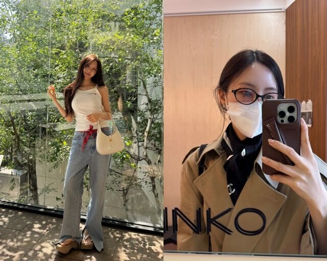 또 다른 사진에서는 짧은 트렌치 재킷, 검은색 미니 팬츠와 무릎 아래까지 오는 긴 양말, 플랫폼 슈즈에 검은 가방을 착용해 시크한 스타일을 선보였다. 이외에도 명품 브랜드 M사 구두와 C사 스카프를 착용해 럭셔리함까지 더했다. 각양각색 화려한 효민의 패션들이 절로 감탄을 자아낸다.