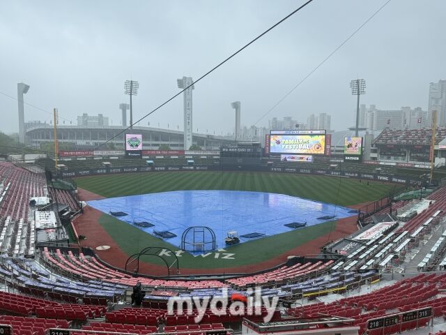 [마이데일리 = 수원 박승환 기자] 롯데 자이언츠와 KT 위즈 더블헤더 1차전 맞대결이 결국 우천으로 인해 취소됐다. 따라서 11일 더블헤더 맞대결이 열린다.