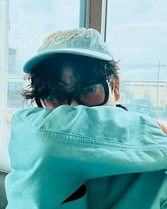 사진 속 MC몽은 민트색 의상을 착용하고 입을 가린 모습이다.