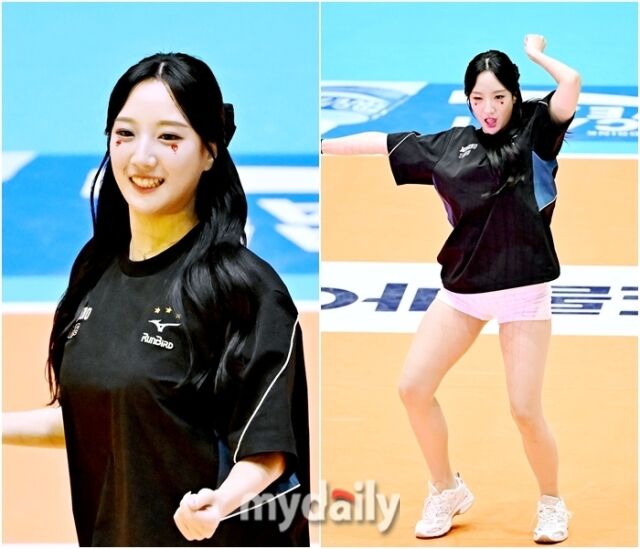 [마이데일리 = 여수(전남) 송일섭 기자] 치어리더 서여진이 22일 오후 전라남도 여수시 진남체육관에서 진행된 '2024 코보컵 프로배구대회' 정관장과 IBK기업은행의 경기에서 열정적인 무대를 선보이고 있다.