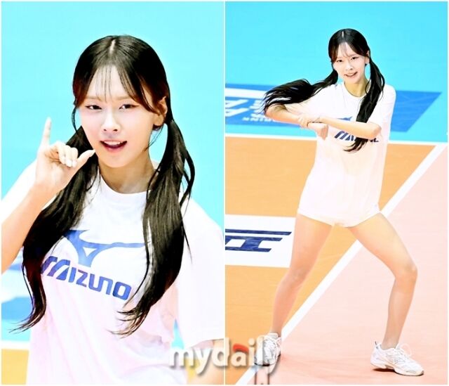 [마이데일리 = 여수 송일섭 기자] 치어리더 김가은이 23일 오후 전라남도 여수시 진남체육관에서 진행된 '2025 KOVO컵 프로배구대회'에서 열정적인 무대를 선보이고 있다.