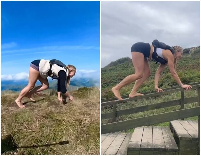그녀의 인스타그램 영상을 보면 수많은 네 발로 걷는 모습이 있다. 정말 엄청난 스피드를 자랑한다. 자연에서 네 발로 걷는 모습인데 팬이 18만 명이 넘는다.