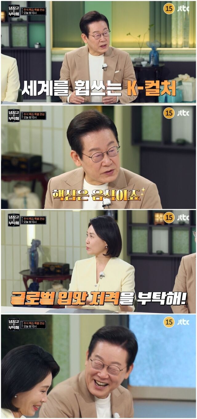 이재명 대통령은 “많이 어색하다”며 예능 출연 소감을 전했다. 이어 ‘냉장고를 부탁해’ 출연을 결심한 이유에 대해 “K-POP이나 드라마도 중요하지만, 진짜 큰 문화의 핵심은 음식이다. 케이푸드를 수출해야겠다”고 밝혔다.