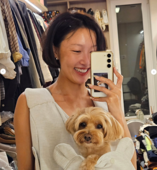 또 콧등 미소로 애교 셀카를 찍거나 반려견을 품에 안고 환한 미소를 짓는 모습도 앵글에 담았다.