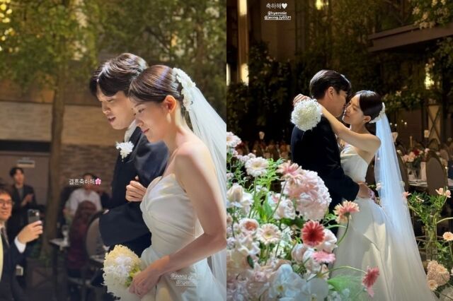 공개된 결혼식 사진과 영상에는 수트와 순백의 드레스를 입은 두 사람이 하객들의 축하 속 입맞춤을 나누고, 장난기 가득한 포즈로 손키스를 전하는 모습이 담겨 훈훈함을 자아냈다.