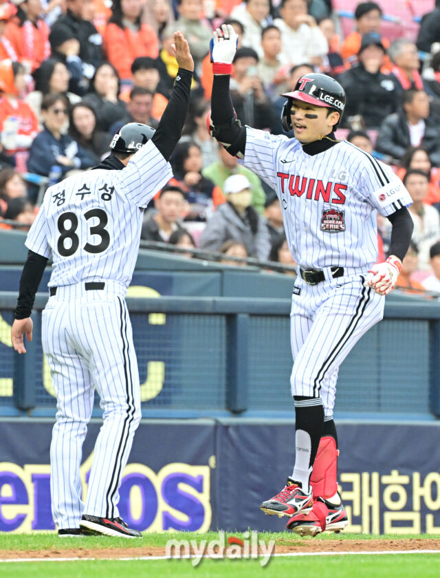 [마이데일리 = 곽경훈 기자] LG가 26일 오후 서울 잠실야구장에서 진행된 '2025 신한 SOL Bank KBO 한국시리즈 1차전' 에서 한화 이글스를 상대로 8-2로 승리했다.
