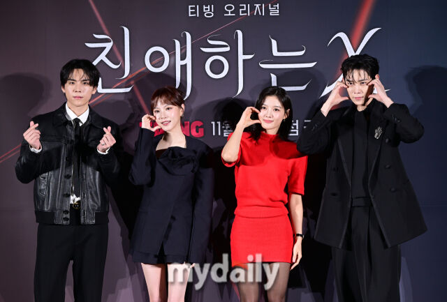 [마이데일리 = 유진형 기자] 30일 오후 서울 용산구 CGV 용산아이파크몰에서 열린 티빙 오리지널 시리즈 ‘친애하는 X’ 제작발표회가 열렸다. 배우 김도훈, 이열음, 김유정, 김영대(왼쪽부터)가 인사하고 있다.