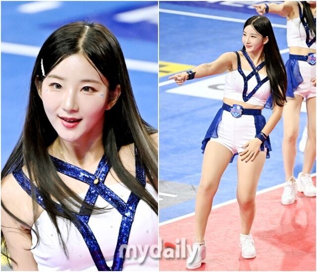 [마이데일리 = 화성(경기도) 송일섭 기자] IBK기업은행 치어리더 김진아가 28일 오후 경기도 화성시 화성실내체육관에서 진행된 '2025-2026 KOVO 프로배구 V리그' 여자부 IBK기업은행과 도로공사의 경기에서 공연을 펼치고 있다.
