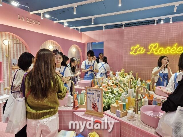 프랑스 친환경 브랜드 ‘라로제’는 프로방스풍 외관으로 시선을 사로잡았다. 프랑스 약사 두 명이 자신의 아이들을 위해 만든 비건 화장품이다. 목욕탕 콘셉트의 부스는 세면대까지 설치해 세럼, 스크럽, 바디워시 등 다양한 라인업을 체험할 수 있게 꾸며졌다.