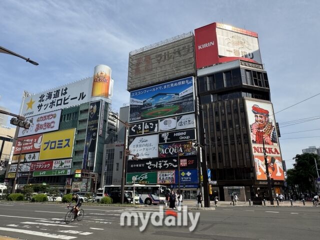 [마이데일리 = 홋카이도·이지혜 기자] 잘 찍은 여행 사진 한 장! 랜드마크를 배경에 넣으면 그곳이 어디인지 한눈에 알아볼 수 있다. 삿포로 여행사진에는 어김없이 한 손에 맥아 보리를, 한 손에 술잔을 들고 있는 빨강 모자 스코틀랜드 아저씨가 등장한다. 바로 스스키노 교차점에 내걸린 대형 닛카 위스키 광고판이다.
