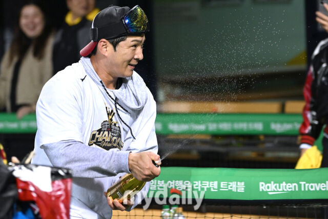 [MD포토] 오지환 '샴페인 타겟은 바로 아내