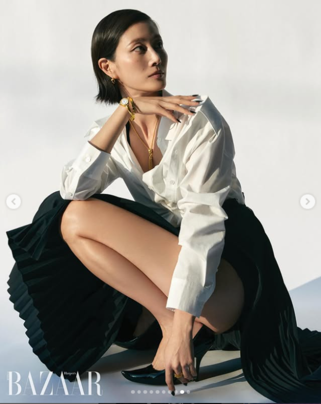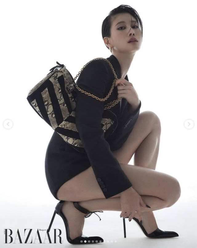 이현이는 모델 데뷔 20주년을 기념하며 촬영한 패션 매거진 하퍼스바자 코리아 화보 컷을 앵글에 담았다.