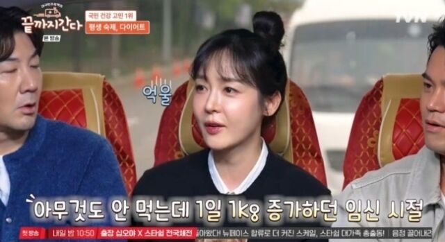 이어 성유리는 "평생 따라다니는 숙제가 다이어트다. 지긋지긋하다"며 고충을 털어놨다. 그는 "귀여운 아기들을 낳고 80kg까지 쪘다. 너무 억울한 게 아무 것도 안 먹었는데 하루에 1k씩 쪘다"고 당시 상황을 설명했다.