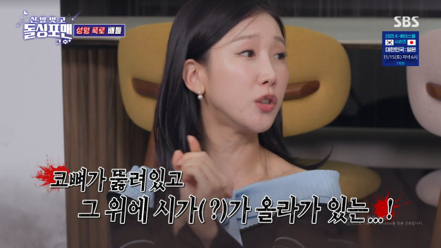 박소영은 "코뼈가 뚤려 있는데 시가가 그 안에 들어가 있더라"며 "실리콘이다. 그때 당시 유행했던 성형 스타일이었다. 요즘은 실리콘은 비스듬이 넣는데 일자로 놓은 거다"고 덧붙였다.