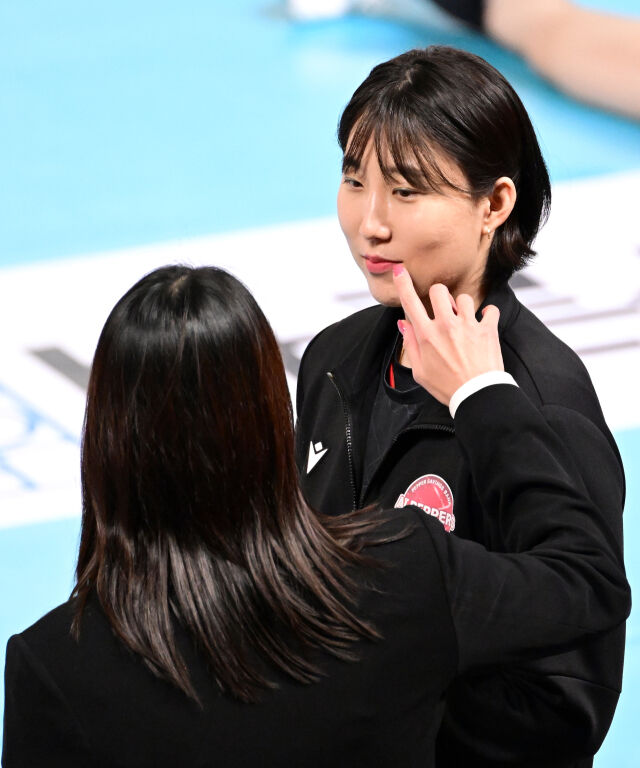 해설위원 표승주로, 코트로 내려온 그녀는 긴장한 표정으로 후배들과 인사했다. 하지만 친정팀 후배들이 부담스러울까 봐 정관장 코트로 넘어가지 못했다. 그러자 페퍼저축은행 박정아가 장난치며 놀리기 시작했고, 표승주는 박정아를 괴롭히며 친분을 과시했다.