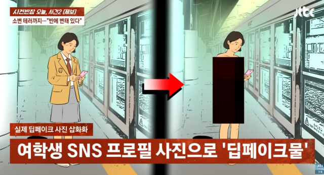 지난 17일 JTBC ‘사건반장’에 따르면, 지난달 28일 서울의 한 남녀공학 고등학교 교실 내 설치된 공용 컴퓨터에서 나체 여성의 사진과 성폭행 예고 글이 발견됐다. 사진 속 인물은 해당 학급의 한 여학생이었다. 이 학생의 SNS(소셜미디어) 프로필 사진을 합성한 딥페이크 이미지였다.