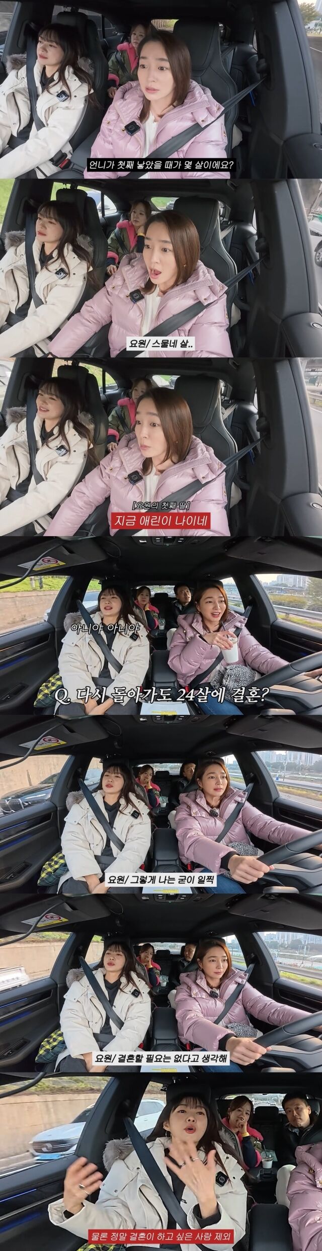 영상에서 이민정은 차를 타고 캠핑장으로 이동하던 중 이요원에게 "언니가 첫째 낳았을 때가 몇 살이었냐"고 물었다. 이에 이요원은 "스물네 살"이라고 답했고, 이민정은 깜짝 놀라며 "완전 애기다. 지금 애린(이요원 첫째 딸)이 나이네"라고 말했다.
