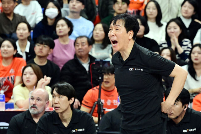 5세트에서는 신영철 감독이 표정과 액션이 확실했다. 6-5 메가랠리 끝에 차지환이 공격에 성공하자 신영철 감독은 주먹을 불끈쥐며 기뼈했다. 전광인 퀵오픈으로 10점 고지를 먼저 잡은 OK저축은행은 우리카드의 추격을 뿌리치고 승리를 완성했다.