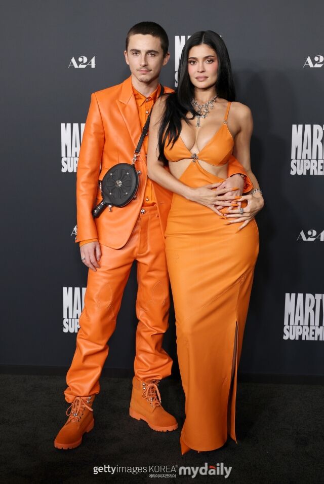 [마이데일리 = 곽명동 기자]할리우드 배우 티모시 샬라메(29)와 연인 카일리 제너(28)가 레즈카펫을 오렌지 빛으로 물들였다.