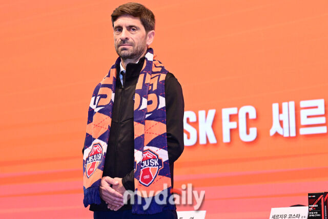 [마이데일리 = 곽경훈 기자] 세르지우 코스타(52·포르투갈) 감독이 29일 오전 서울 메이필드호텔에서 진행된 프로축구 K리그1 제주SK 감독 취임 기자회견에서 포즈를 취하고 있다.