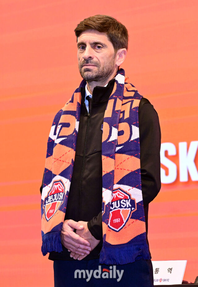 [마이데일리 = 곽경훈 기자] 세르지우 코스타(52·포르투갈) 감독이 29일 오전 서울 메이필드호텔에서 진행된 프로축구 K리그1 제주SK 감독 취임 기자회견에서 포즈를 취하고 있다.