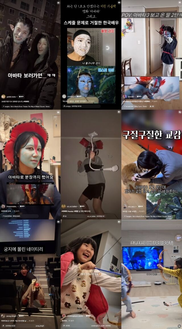 먼저 푸른빛 피부부터 신경이 연결되어 있는 '쿠루'까지 나비족으로 완벽 변신한 관객들의 후기들이 시선을 집중시킨다. 정성스러운 분장과 함께 영화관 방문을 인증한 이들부터 '아바타' 시리즈를 대표하는 촬영 기법인 퍼포먼스 캡처 비하인드를 직접 연출한 후기, 재의 부족 '바랑'의 특징을 살린 패러디 영상과 나비족의 교감 의식인 '사헤일루'를 패러디하는 모습까지 다채로운 형태의 영상들이 연일 도배되고 있어 이번 작품을 향한 대한민국 관객들의 무한 애정을 실감케 한다.