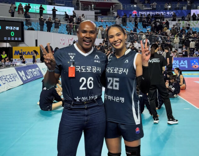 한국도로공사의 태국 출신 타나차가 김천에서 반가운 얼굴을 만났다. 지난 7일 김천실내체육관에는 타나차의 태국 친구가 등장했다. 이름은 제임스 루사미카에다. 제임스는 넷플릭스 예능 ‘피지컬: 아시아’ 출연진이기도 하다. 타나차와 인연도 깊다.