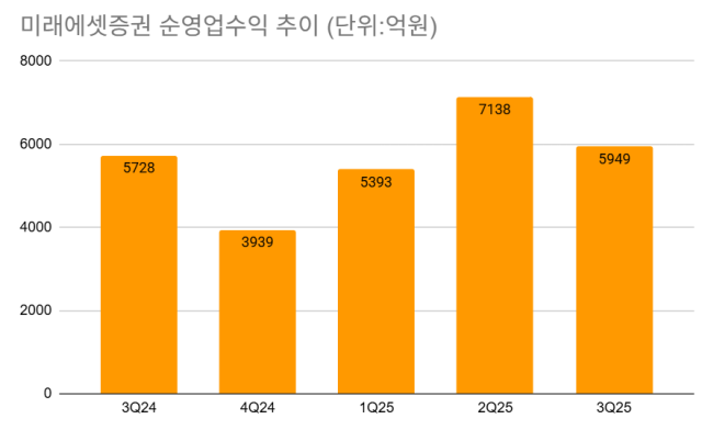 브로커리지(주식·채권·선물 등의 거래)와 자산관리(WM) 부문은 모두 분기 기준 사상 최대 실적을 달성하며 실적 반등을 주도했다. 3분기 브로커리지 수수료 수익은 2637억원으로 전 분기 대비 22% 증가했고, 금융상품 판매 수수료 수익도 같은 기간 21% 늘어난 918억원을 기록했다. 증시 회복과 함께 개인 고객 자산이 빠르게 늘어나며 리테일 기반 수익성이 강화된 것으로 분석된다.