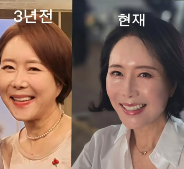 공개된 사진에는 3년 전과 현재의 모습이 담겨있다. 특히 3년 전과 달리 주름 없이 팽팽한 얼굴이 시선을 사로잡는다.