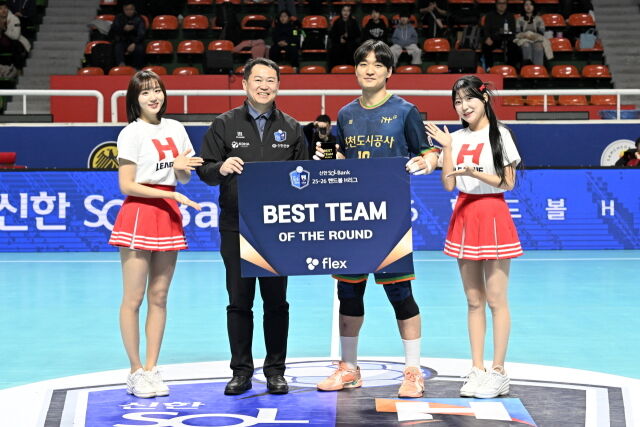 [마이데일리 = 심재희 기자] 인천도시공사 전진수가 ‘신한 SOL Bank 2025-2026 핸드볼 H리그’ 남자부 3라운드 MVP에 선정됐다. 인천도시공사는 'flex 베스트팀'에 뽑혔다.